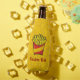 ilustracion personalizado de un pequeño paquete de papas fritas sobre fondo de comida basura sin soldadura amarillo. texto personalizado.