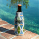 Este refrigerador de botellas tiene un diseño moderno de triángulos de mediados de siglo cuyos fondos han sido curvados, puestos en pares con un oval entre ellos. Si te gusta el diseño pero prefieres colores diferentes, envíame un mensaje.