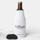 Modern Script Personalized Groomsmen Bottle Cooler presenta el nombre del groomsman personalizado en un estilo de letra de escritura moderno negro con título y fecha boda en modernos sans serif estilo de fuente sobre fondo blanco. También perfecto para la empleada de honor, la niña flor, la madre de la novia, los padrinos, el mejor hombre y más.
