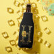 El diseño del refrigerador de botellas divertidas incluye letra H decorada en oro con un ramo de girasol color bonito, personalizable dorado texto moderno sobre fondo negro