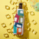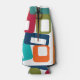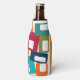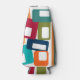 Este refrigerador de botellas tiene un diseño moderno de mediados de siglo de líneas y rectángulos en tonos retro de naranja, oro, arándanos, verde azulado, verde, azul, turquesa y verde.
