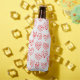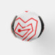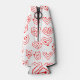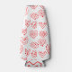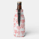 Este refrigerador de botellas tiene un diseño moderno de mediados de siglo de San Valentín de máscaras rojas dispersas en un campo de blanco.