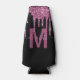 Mantenga las bebidas frescas con estilo con este purpurina personalizado y refrigerador de bebidas glam. El diseño de esta chica presenta un borde en la parte superior de un falso purpurina de goteo morado con chispas. En el centro está tu monograma inicial en morado con tu nombre en un elegante guión rosa pálido con letras a mano sobre un fondo de negro. Diseñado sólo para ti por Extreme Tees!