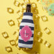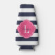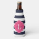 Enfriador De Botellas Monograma de franjas de perrito azul y rosa de la