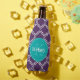 Un moderno diseño de estilo marroquí con azulejos color morado y blanco, con un brillante monograma de personalizado azul verde azulado y una plantilla de nombres.