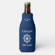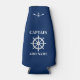 Helmín de rueda de buques vintage, anclaje náutico y orejas con su nombre de capitán o nombre de barco enfriador de botellas azul de la Marina.