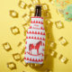 Este impresionante refrigerador de botellas de Navidades presenta una imagen de arte digital de un lindo caballo balancín al estilo escandinavo. El caballo es rojo con un mané rojo oscuro, cola y pezuñas. El caballo amistoso sonríe. Tiene una silla blanca y riendas con motivos folclóricos escandinavos bonitos en la silla, incluyendo el sol, la luna y las estrellas y los corazones y flores. La base del mecedor es roja y está cubierta de hojas blancas de bonito. El diseño se inspiró en el caballo Dala sueco. Hay texto personalizado para que pueda personalizar este diseño con un nombre o mensaje de su elección.
