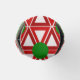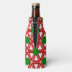 Este refrigerador de botellas tiene un diseño geométrico de triángulos rojos y profundos que se repiten con círculos verdes sobre un campo de blanco roto. ¿Quieres el mismo diseño en colores diferentes? Mándame un mensaje.