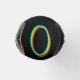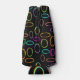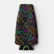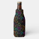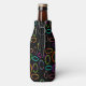 Este refrigerador de botellas tiene un diseño geométrico de grupos de tres óvalos en colores de neón esparcidos por un campo de negro.