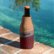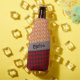 Este refrigerador de botellas tiene un diseño moderno de mediados de siglo de líneas onduladas naranjas sobre un fondo dorado, círculos rojos sobre un fondo marrón y un fondo gris. Si quieres el mismo diseño con colores diferentes, envíame un mensaje.