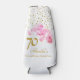 Purpurina Oro de color Orquídea Rosa 70th Birthday Party Bottle Cooler. Moderno refrigerador de botellas florales de 70 años con una hermosa orquídea acuarela rosa y un falso purpurina de oro. Añade tu nombre y edad.