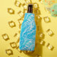 Este refrigerador de botellas se muestra en una huella de palmas tropicales. Color azul turquesa Personalizar este artículo y añádalo o compre tal como está. Imagen de stock