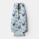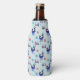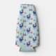 Un refrigerador de botellas con un patrón de repetición. Ilustrado con un par de ciervos escandinavos azules con pañuelos rojos. Con marcas decorativas en sus cuerpos. Además de un trío de navidades rojas y azules con una estrella en la parte superior. Unos flamencos de nieve esparcidos por todos lados.