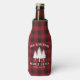 Personaliza tu casa de vacaciones rural con hermosos refrigeradores de botellas de temática rústica, con tu nombre y "Cabina Familiar", Ranch, Cottage u otro texto junto con su fecha establecida y ubicación si lo deseas. Este diseño personalizado y único presenta encantadores textos rústicos de estilo rústico con una silueta blanca de pinos sobre una clásica estampada de búfalo rojo. Perfecto para las vacaciones de sus navidades o en cualquier época del año. Para ver más diseños como este, por favor visite mi tienda aquí en "Zazzle.com/Store/Rustic_Charm". ¡Gracias.
