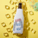 Santa Estaba Aquí texto rosa y azul y dos huellas de pies en la nieve fresca. Graciosos Navidades Xmas impresiones, regalos y camisetas por diversión, humor y buen humor. Enfriador de botellas