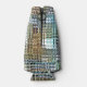Imágenes digitalizadas, transformadas esta foto, en una exhibición de colores brillantes; blanco, azul, negro, bronce, verde y plateado, un patrón vívido, de tejido y satén.