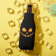 Pon tu Halloween en marcha con este genial refrigerador de botellas que presenta una cara de jack o' linterna ligeramente brillante sobre fondo negro