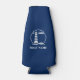 Su texto, nombre o nombre de barco personalizado con un faro clásico náutico en un refrigerador de botellas azul de la Marina.