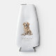 Custom Pet Wedding Bottle Cooler. Either send me a picture of your dog that I can use, change out the picture yourself, or tell me the breed of the dog and I can send you a mockup of the napkin. This is a Golden Retriever. The changes need to be made before the can coolers are ordered. The designer does not handle the printing or shipment. White background gold text.