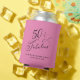 Celebra tu 50 cumpleaños con estilo con estos refrigeradores de bebidas personalizados. "50 & Fabulous" está escrito en estilo guion con un fondo rosado. Puede personalizar con su nombre y fecha de fiesta.