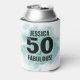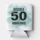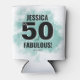 Una mezcla de escritura linda y audacia moderna con este diseño simple de "50 y fabuloso"! Con un colorido clásico en blanco y negro con un toque de color del fondo de color azul verde azulado (o turquesa claro). Personalizar al nombre y la fecha (puede usar el cumpleaños, el día del fiesta o la fecha de nacimiento original (alias "Este"). 10.23.1964), y si lo necesitas, también puedes cambiar el 'y' y 'fabuloso' si prefieres otra palabra. ¡Genial para los favores de fiesta o sólo consigue uno para la persona de cumpleaños! Si quieres ver esta impresión en otro fondo de color, por favor envíame un mensaje y veré lo que puedo hacer! Elegante Personalizado Moderno Acuarela Verde azulada Cincuenta Y Fabuloso Manga De Bebida Refrigerador de bebidas 50º Cumpleaños