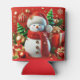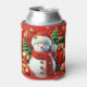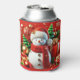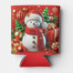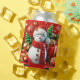 Un muñeco de nieve adornado con un gorra rojo y una bufanda durante un invierno nevado.
