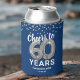 Refrigeradores de bebidas personalizados de 60 años con un elegante fondo azul marino que se puede cambiar a cualquier color, glamoroso purpurina brillante de plata, sesenta globos de hellio de plata y una plantilla de texto simple que es fácil de personalizar.