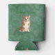 Obra de un lindo corgi sentado sobre un fondo verde con patas de corazón. Ideal para los amantes del perro de todas las edades.