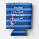 Un refrigerador de bebidas de temática náutica que puede ser fácilmente personalizado para bodas, compromisos, aniversarios o cualquier evento que requiera ser recordado. El anclaje de coral y las franjas azules forman parte del diseño, pero el color de fondo, el color del texto y el estilo se pueden personalizar para coordinar con un esquema de color individual. Fácil de personalizar para cualquier evento. Diseño de la Menagerie de Lechuza Nocturno, 2015.