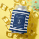 Anclaje náutico con bachillerato de anillo dorado Refrigerador de bebidas con franjas azul y blanca de la marina