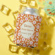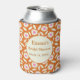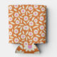 Este es un enfriador de latas personalizado para despedida de soltera retro con flores de margarita blancas y hojas abstractas sobre fondo naranja. Contiene todos los detalles que necesitas para tu fiesta y puedes cambiarlo usando la