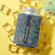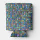 Refrigerador de bebidas personalizada con pequeños azulejos glamorosos en tonos azules, verdes y morados. Hay una pancarta vertical semitransparente de nombres. La pancarta es negra y el texto es gris claro o marrón claro. Tanto el nombre como el cartel se pueden personalizar fácilmente o reposicionar. También puede ajustar el tipo de letra, el tamaño y el color del texto.