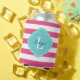 Enfriador De Latas Bandas de Preppy Turquesa y Rosa Caliente Monogram