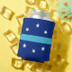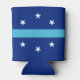 Refrigerador de bebidas con la bandera de Anaheim, California. Una bandera azul con seis estrellas blancas y una banda azul
