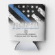 Este diseño incluye una bandera de la fuerza policial con rayas blancas y negras, y una delgada franja azul. Este refrigerador de bebidas es grandioso por mostrar su agradecimiento a un oficial que celebra un aniversario o por agradecer a un agente de la ley, sheriff, capitán o jefe que se retira por sus años de servicio.