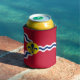 Refrigerador de bebidas con bandera de la ciudad de St. Louis; bandera roja con olas blancas y azules y fleur-de-lys azules en círculo amarillo