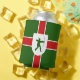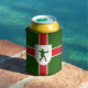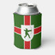 Refrigerador de bebidas con diseño con bandera del condado histórico de Nottinghamshire, en Inglaterra, Gran Bretaña; bandera verde con cruz roja, con inescutcheon con ilustracion de Robin Hood en el centro