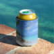 Can cooler with a scenic tropical photograph. A secluded beach with white sand and turquoise water.