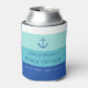 Un refrigerador de bebidas náutico para tu casa o barco de playa en un degradado de azul con un ancla elegante en la parte superior, tus nombres en un guión encantador y rústico, y el año en que tu casa se estableció.