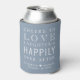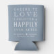 Un regalo divertido para sus bodas invitados, novios y padrinos. Este polvoriento refrigerador de bebidas azul presenta "Salud para amar la risa y la felicidad eterna después del Fiesta" en una mezcla de tipografías blancas modernas y elegantes, sus nombres y fecha boda.