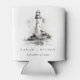 Enfriador De Latas Boda de boceto náutico del faro blanco y negro