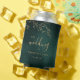 Boda elegante botánica verde esmeralda y dorado enfriador de latas