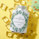 Fondo blanco, texto negro. Decorada con una corona de eucalipto verde. Sr. y Sra. con corazón. Personalice y agregue sus nombres y la fecha.