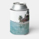 Estos enfriadores de lata para boda tropical de playa con acuarela pueden personalizarse con su información en tipografía elegante. Diseñado por Thisisnotme©