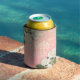 Bodas Saludos a los Refrigeradores de bebidas de ducha de bodas / plantillas de koozies - Elegante color de agua blanco adorable Hidrangea Flores y cadenas de luz sobre fondo degradado rosado. Un diseño perfecto para tu gran día. ¡Todo el estilo de texto, colores, tamaños se pueden modificar para adaptarlo a sus necesidades!
