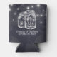 Bodas Saludos a los Refrigeradores de bebidas de amor / plantillas de koozies - Elegantes frascos de mason y luces de cadena en el fondo azul floral de Damasco. Un diseño perfecto para tu gran día. ¡Todo el estilo de texto, colores, tamaños se pueden modificar para adaptarlo a sus necesidades!