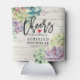Bodas Saludos a los Refrigeradores de bebidas de ducha de bodas / plantillas de koozies - Elegantes y encantadoras Plantas suculentas de color agua sobre fondo de madera blanca rústica. Un diseño perfecto para tu gran día. ¡Todo el estilo de texto, colores, tamaños se pueden modificar para adaptarlo a sus necesidades!