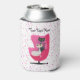 Este refrigerador de latas o botellas tiene gatos bonitos, uno blanco negro sentado en una silla rosa de mediados de siglo sobre un fondo blanco con puntos de polka rosados. Personalizar el texto en la parte delantera y posterior con la plantilla.
