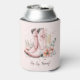 Celebre a la futura novia al estilo sureño con este enfriador de latas personalizado para la fiesta de novia que presenta un diseño de acuarela de botas de vaquera rosadas, flores delicadas y una copa de champán. Con texto personalizable como “La despedida de soltera de Charlotte”, es el recuerdo perfecto para su celebración de temática western o rústica.