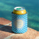 Enfriador De Latas Bright Blue Gingham Custom Text